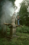 Die Heiligenstatuen und filigranen Schmuckelemente aus Holz bedürfen ebenfalls dringend der Restaurierung. Hier swird erst nach der Abhahme der Figuren das tatsächliche Ausmaß der Schäden sichtbar und damit der Resutaurierungsarbeiten. Die ersten Analysen haben immerhin ergeben, dass das Holz nicht vom Holzwurm befallen ist.