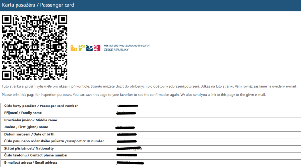 - Als Bestätigung erhalten Sie dann Ihre Karta pasažéra / Passenger card mit QR-Code ebenfalls per E-Mail. (Abb. 2)