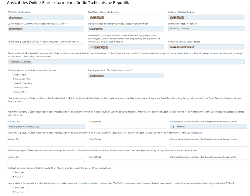 - Zur Einreise in die tschechische Republik ist ein Online-Formular auszufüllen. (siehe unten)